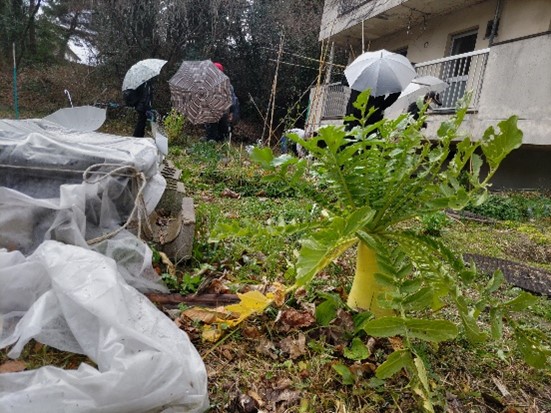 “ど根性大根”のその後です。順調に育っていますね。この大根は収穫せずに“大根の一生”を観察しようと思っています。