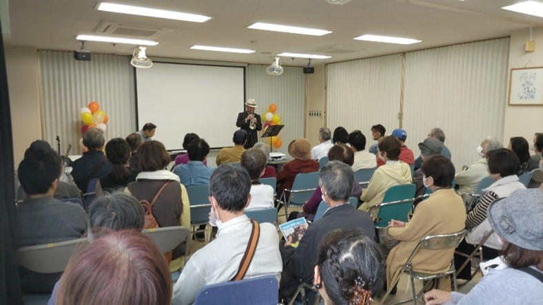 Fly Me to the Moonをしっとりと聞き、となりのトトロ「さんぽ」では皆で足踏みをしながら楽しくリハビリしました。なんぷく音頭のJAZZバージョンも聞くことができ、最後は皆でなんぷく音頭を歌って踊って終わりました。5年ぶりなので人が集まるかな?と心配しましたが、椅子が足りなくなるくらい大盛況でした(急いで椅子を補充しました)。