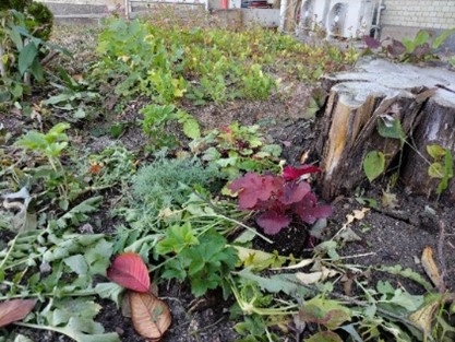 - 刈り取った草を花壇に敷いておくと、次の年には栄養のある土になります。