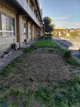 “園芸療法”で培った技術を用いて、この草いっぱいの場所を少しずつ整備してくれます。どのような花壇になるでしょうか。楽しみです。