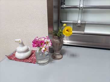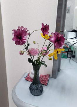 春は花が多く咲くので、外来受付に切り花を飾っています。